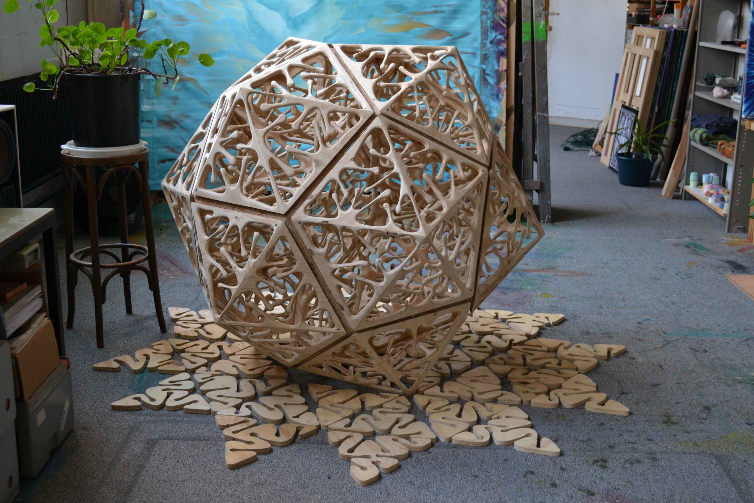 Licht, energie, prismatisch kleurgebruik, hergebruik, transformatie, natuur, chemie, verf, hout, flow, dynamisch, fysiek, geometrisch, organisch, onderzoek, extase, vibraties, lijnenspel, eindeloos.