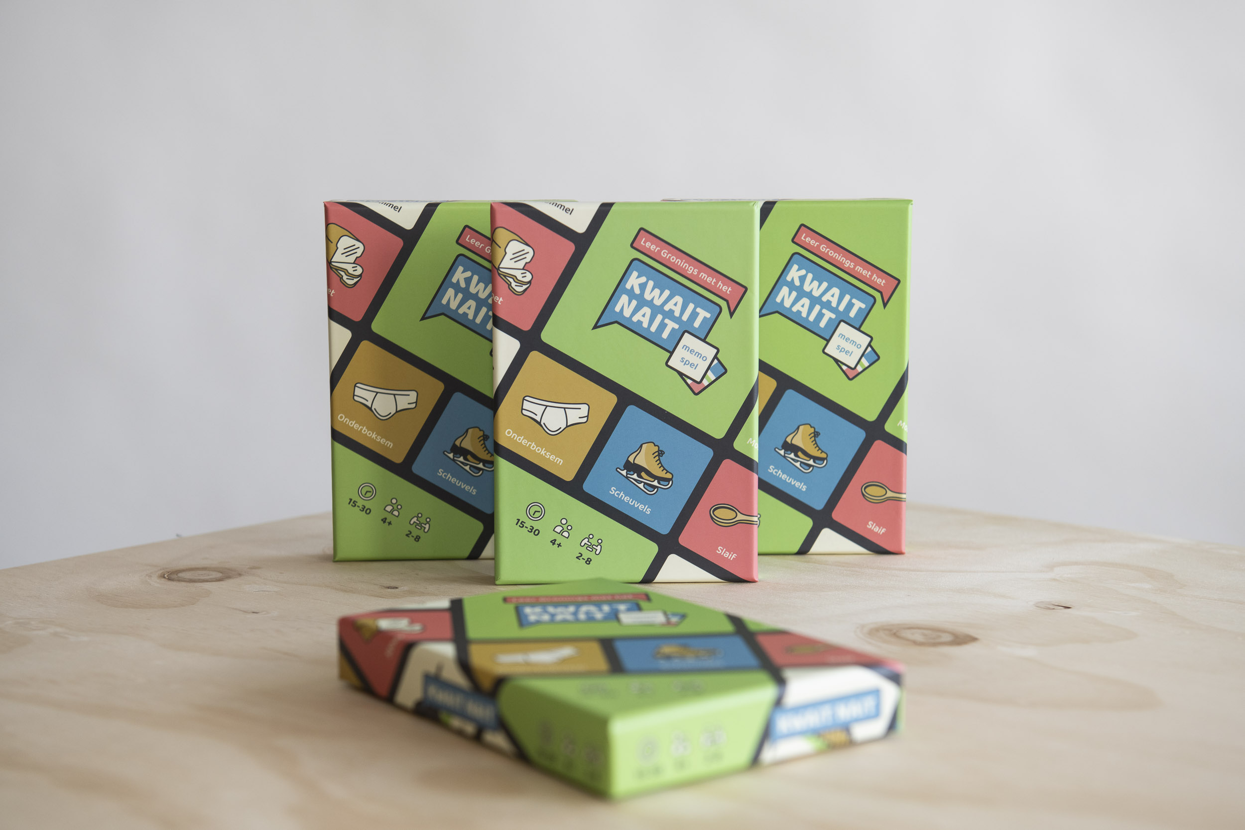Van boezeroen tot swieniegel. Weet jij wat het betekent? Leer spelenderwijs Gronings met Kwait Nait. Een Gronings-Nederlands memo-spel.