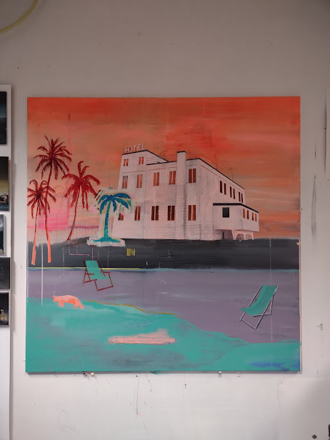 Ik houd van dolen, dwalen, verdwalen. Lopen zonder doel, zonder plattegrond. Urenlange dwaaltochten door grote steden maar ook door de natuur. De eenzaamheid, de traagheid, de vrijheid en het erin onder gedompeld zijn vind ik fijn. Dan kom ik weer tot nieuwe ideeën. Zien wat er op je pad komt, wat zich aandient. Soms is het een verlaten plek, een mooi uitzicht, een braakliggend terrein, een onverwachte ontmoeting, een oud gebouw. Op die manier komen ook mijn schilderijen tot stand. Van tevoren weet ik nooit hoe het eruit komt te zien.
