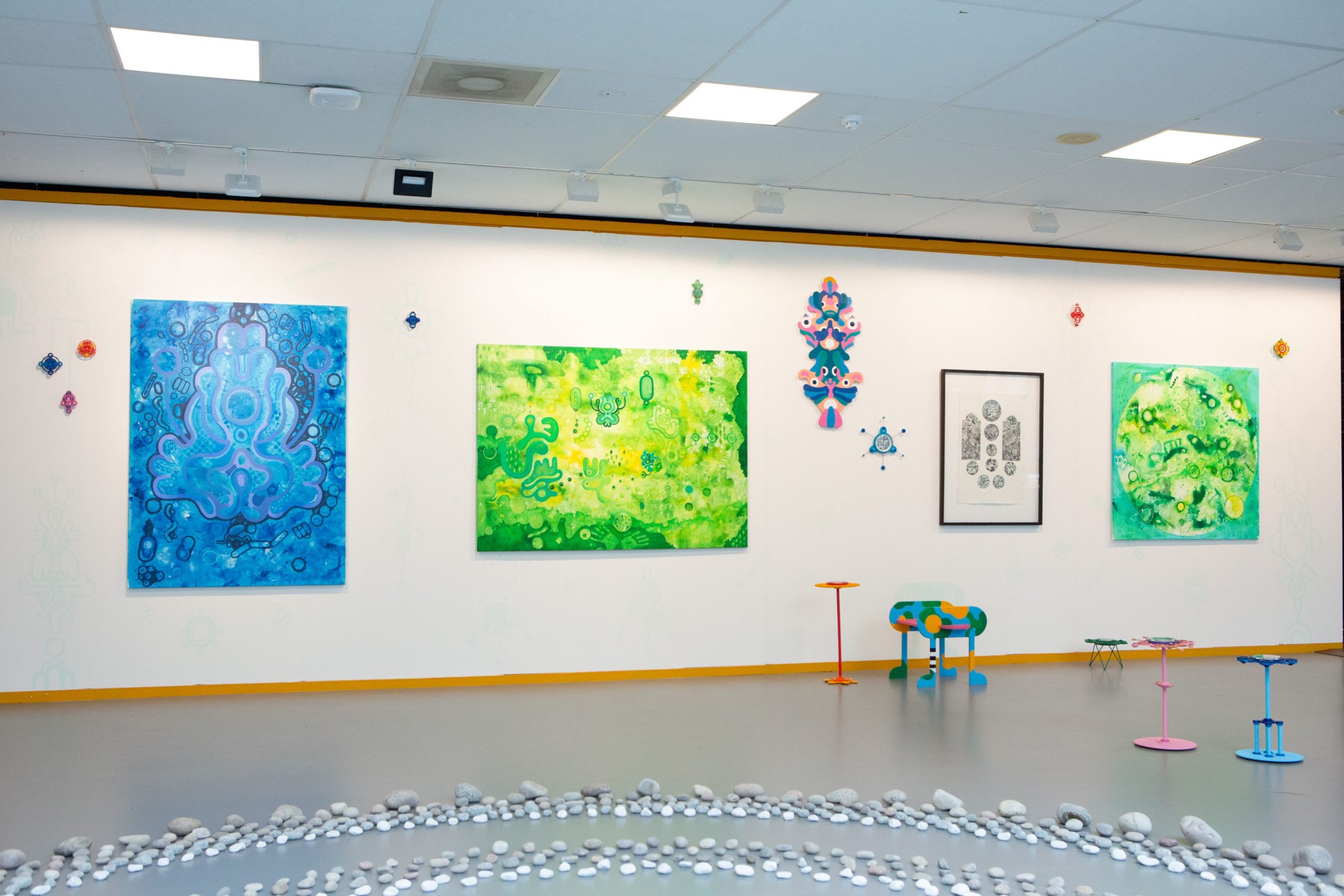 Mijn werk kenmerkt zich door kleurrijke organische vormen waaruit ik mijn eigen wereld op bouw, gebaseerd op de gedragingen van de natuur.