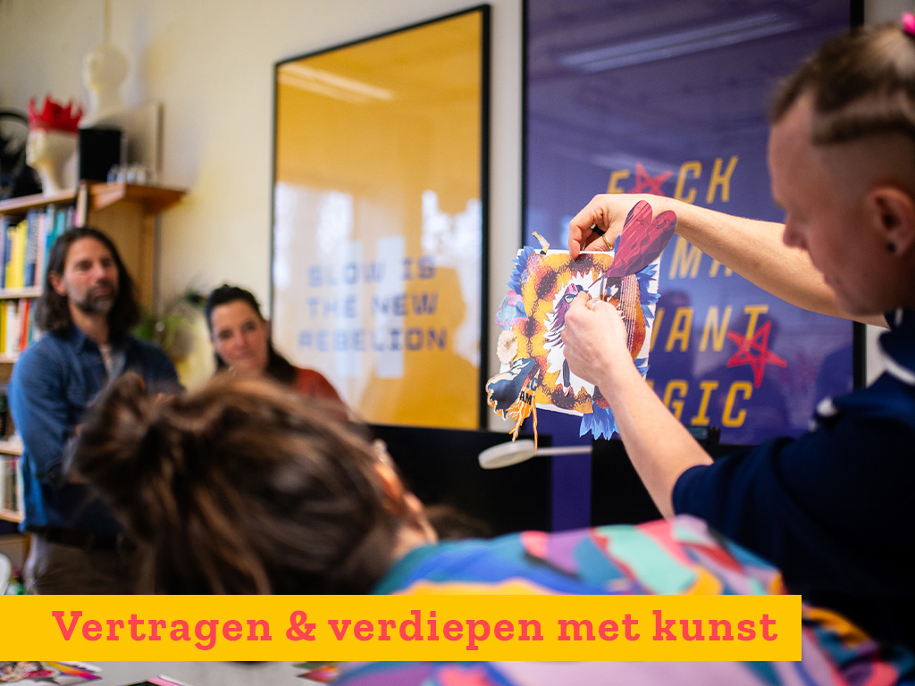 Plezier, spelen en lummelen vormen de beste voedingsbodem voor verandering en dat gaat verassend goed samen met vertraging. Vertraging is geen zwakte, maar een keuze die moed vraagt. Daarom creëren wij tussenruimte, plekken waar vertraging mogelijk is, nieuwsgierigheid groeit en verandering plaatsvindt.