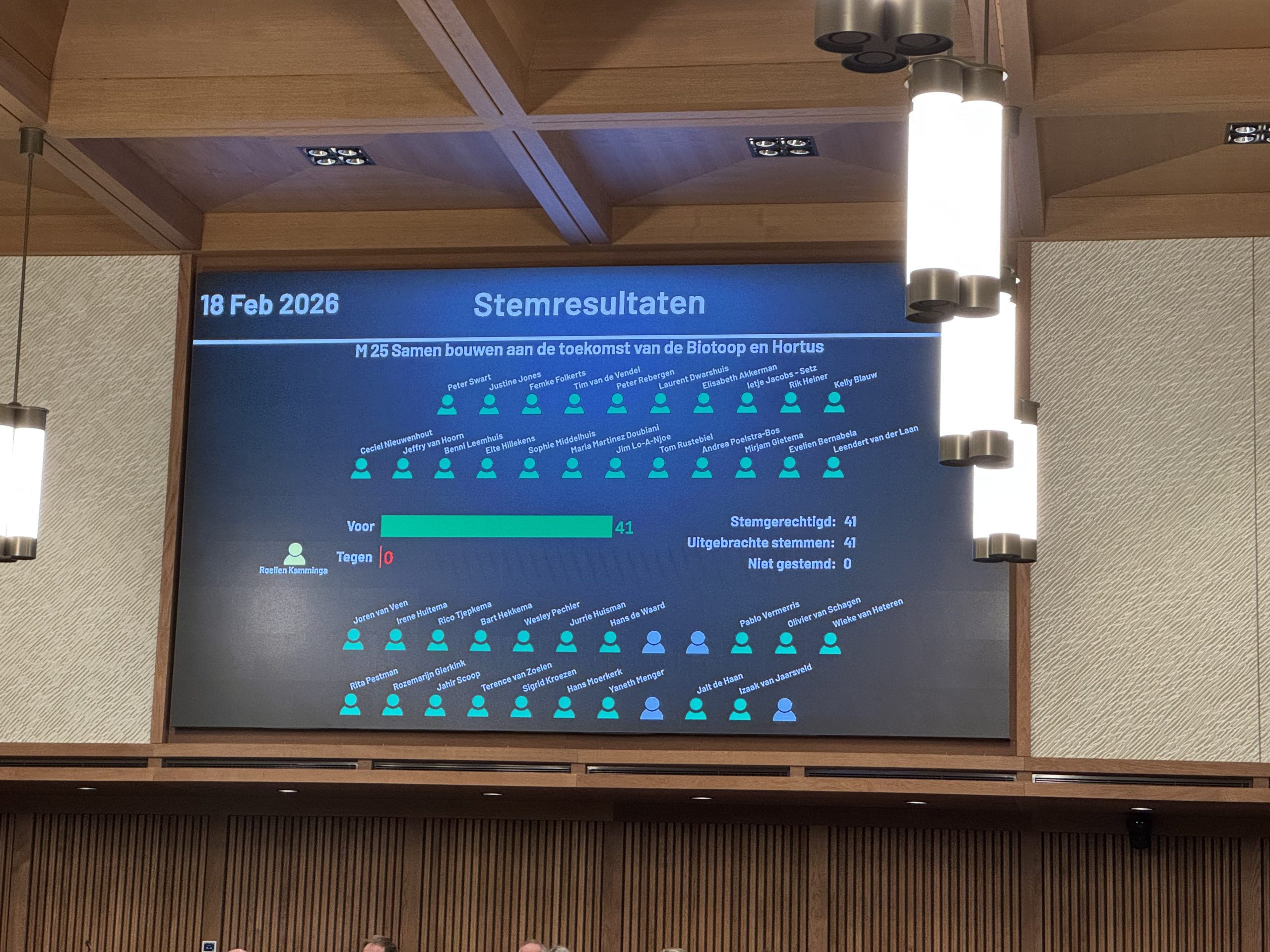 De tweede motie benadrukt dat De Biotoop en de Hortus unieke plekken zijn voor Groningen, met grote waarde voor bewoners, gebruikers en bezoekers. De raad wil dat plannen van de gemeente én plannen van betrokken partijen in het gebied samen worden uitgewerkt en doorgerekend.