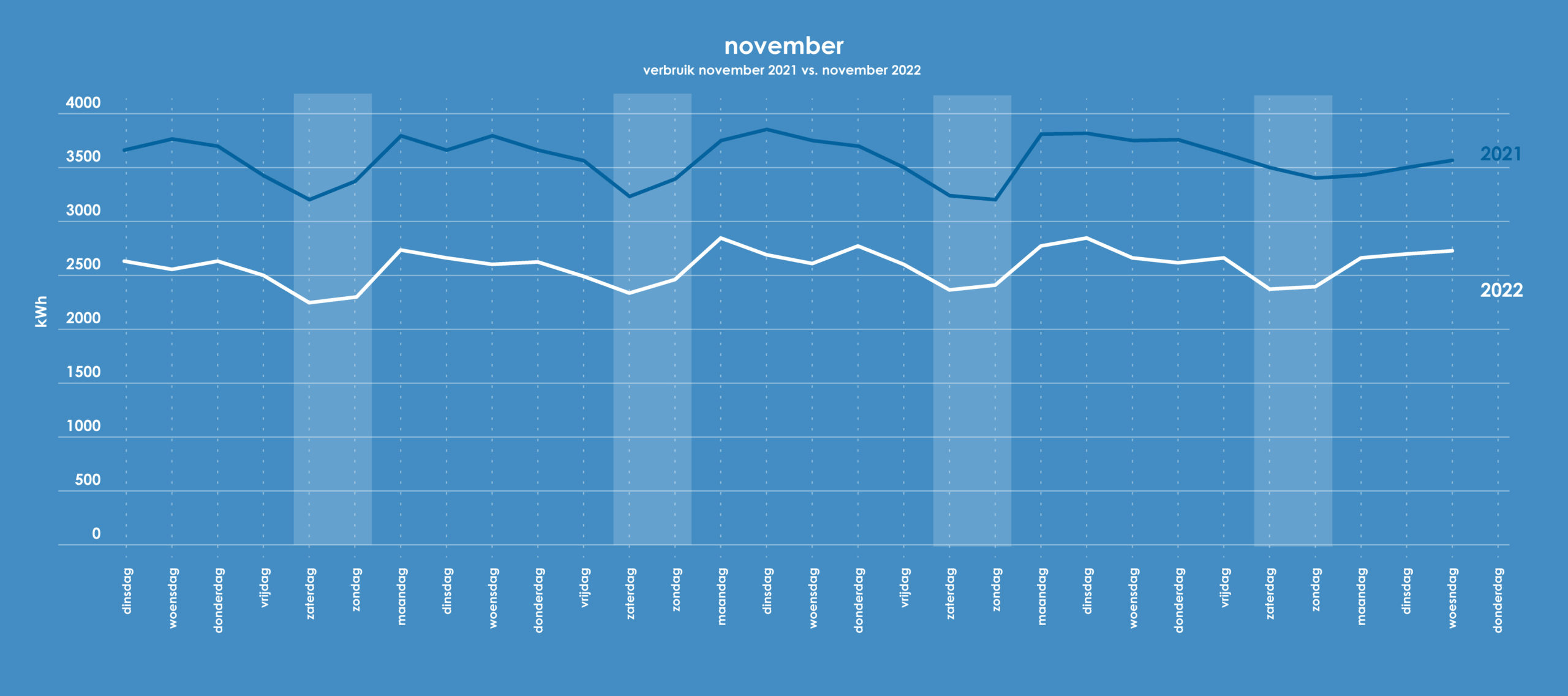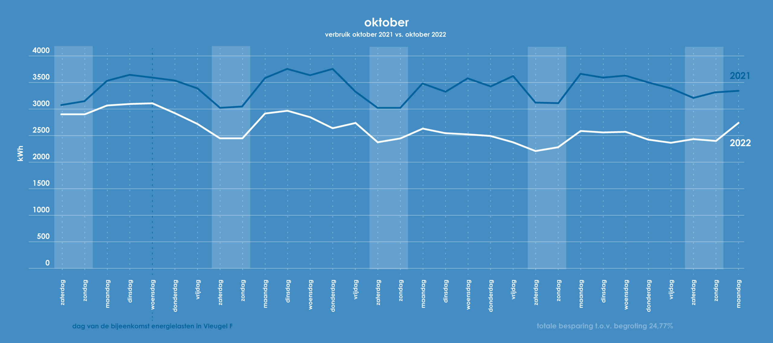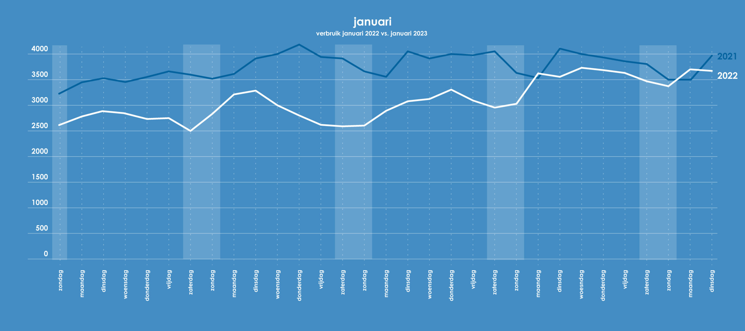 De motivatie om te besparen is er. Dan is het natuurlijk ook fijn om te zien hoe het gaat. Op deze pagina gaan we regelmatig de grafiek van ons verbruik delen, zodat we zien hoe onze gezamenlijke inspanningen zich vertalen naar concrete besparing.