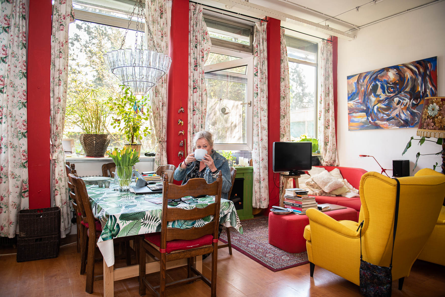 Ik woon in een voormalig hoogleraarskamer plus secretariaat. Het grappige is dat een aantal van mijn vrienden al bekend was met mijn woonruimte, omdat ze hier ooit hun tentamenbriefjes moesten ophalen. Ik ben erg gelukkig met mijn woonplek temidden van mensen van verschillende generaties en met verschillende achtergronden. Het is voor mij absoluut een inspirerende leefomgeving. En het wonen in het mooie groen, met alleen al 200 verschillende soorten vogels, die er een groot deel van het jaar voor zorgen dat de ‘morgen weer aanloeit’, draagt daar zeker aan bij.