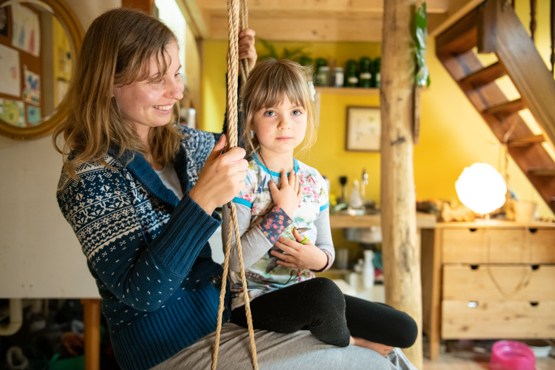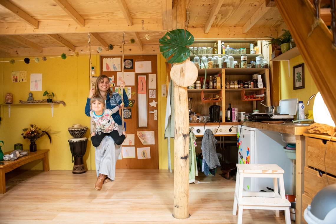 Wij hebben een verhoging in onze woonruimte gebouwd met onbewerkt hout. Daardoor slapen we boven en koken beneden, met de ruimte die je hebt in de Biotoop kun je bijzondere dingen doen. De gezelligheid op de gang en wonen in een groene omgeving zijn voor ons de belangrijkste aspecten van wonen in de Biotoop.