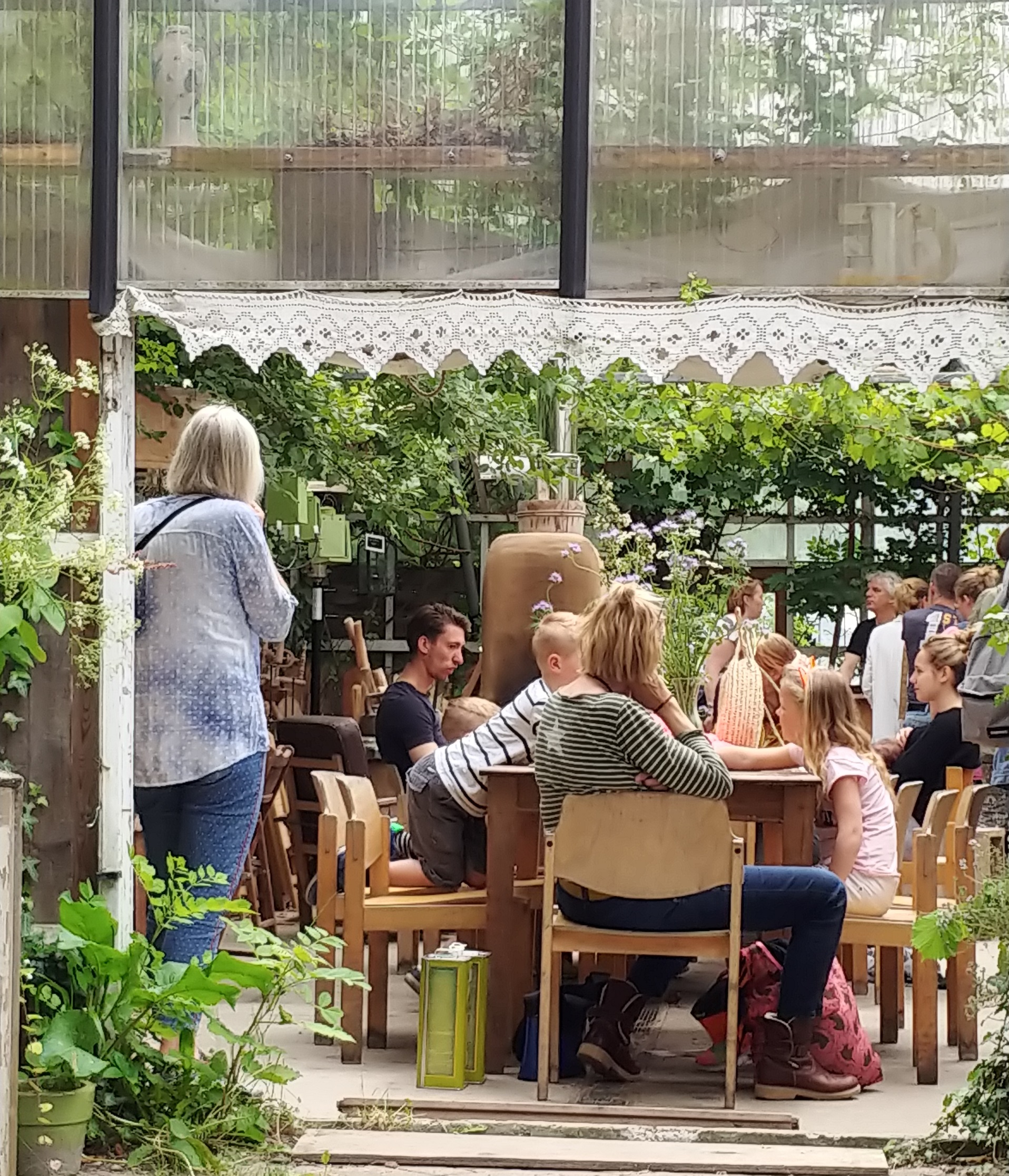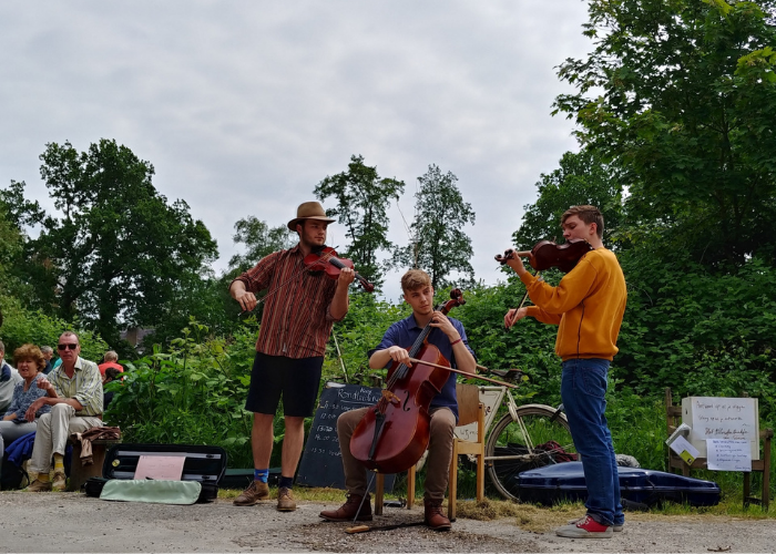 We smikkelden van alle lekkers maar er lag geen zwerfvuil na afloop. Het zonnetje bleef en de buitjes kwamen keurig tegen het einde van de middag. Talloze ontmoetingen in gesprek, stilte, muziek, verkoop van moois, en: waar ken ik dat gezicht ook alweer van? Onze dichtende tuinder Gijs beschreef het allemaal als vanouds zeer beeldend in zijn kakelverse nieuwsbrief: