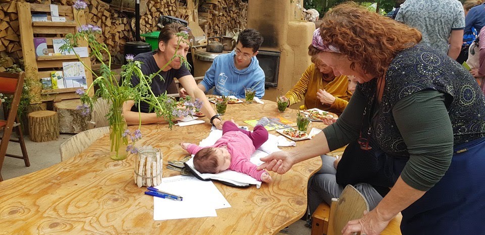 Biotopendag 2019 is weer een feit. Gisteren was het namelijk de dag dat op onze residentie ruim 2000 bezoekers rondliepen. De deuren van de talloze ateliers, werkplaatsen, studio’s en meditatie-oorden die onze Toop rijk is sloten om 18.00 de deuren, de laatkomers konden dan in de regen terug naar huis, want het begon (eindelijk) in de late namiddag te druppen. Dat is een welkom cadeau voor de tuinder en de planten. Op het Zuiderveld, waar de Open Kas en de Zelfoogsttuin zijn gesitueerd, was het een heerlijke drukte, een vrije en gemoedelijke sfeer, vertier en muziek. Honderden en honderden mensen genoten van de vele versnaperingen die overal te verkrijgen waren, zoals vers gebakken pizza’s, dadelballetjes, heerlijke linzensoep, kortom, hoogwaardige lekkernijen. Tel daarbij het gefiddel van de strijkers, de trampoline springende jonge jeugd, de vele baby’s en de picknickkleedjes op het gazon, de hoelahoepers – het Vondelpark in het klein.